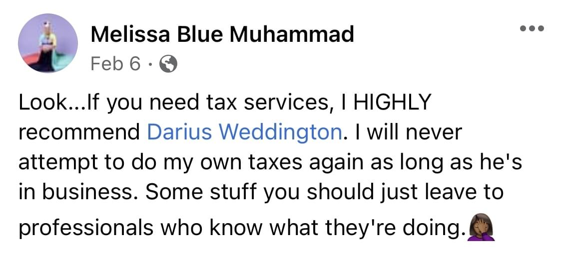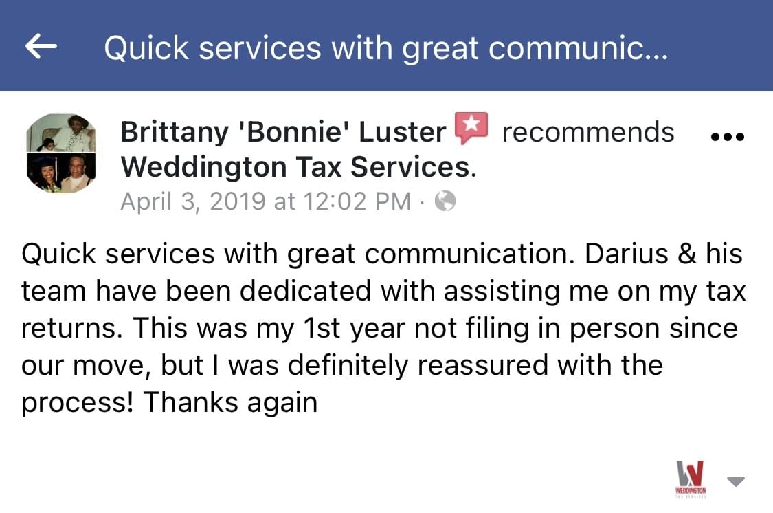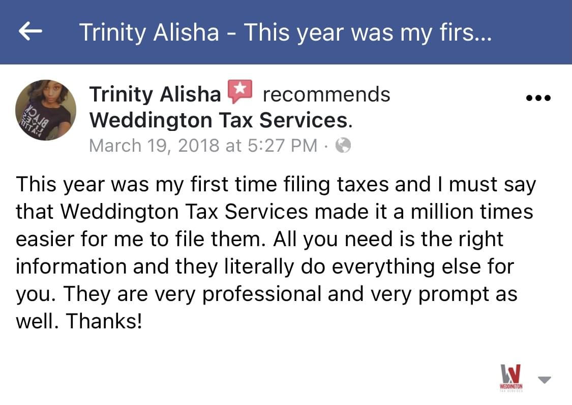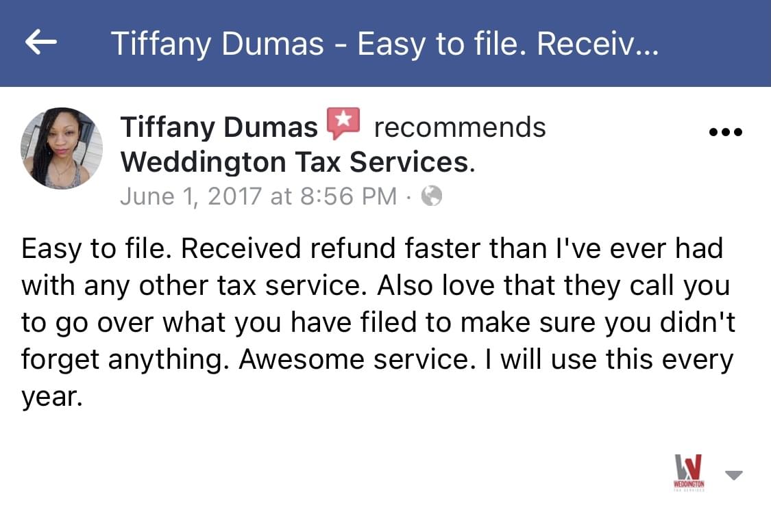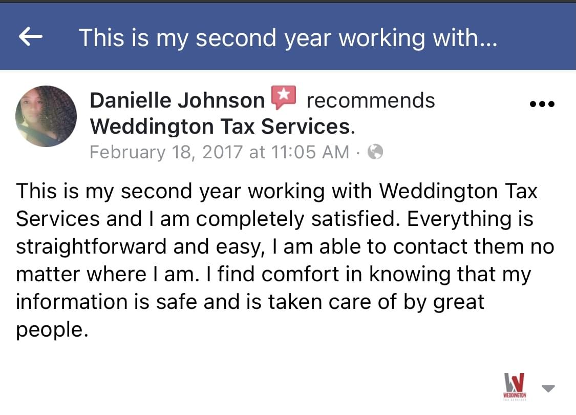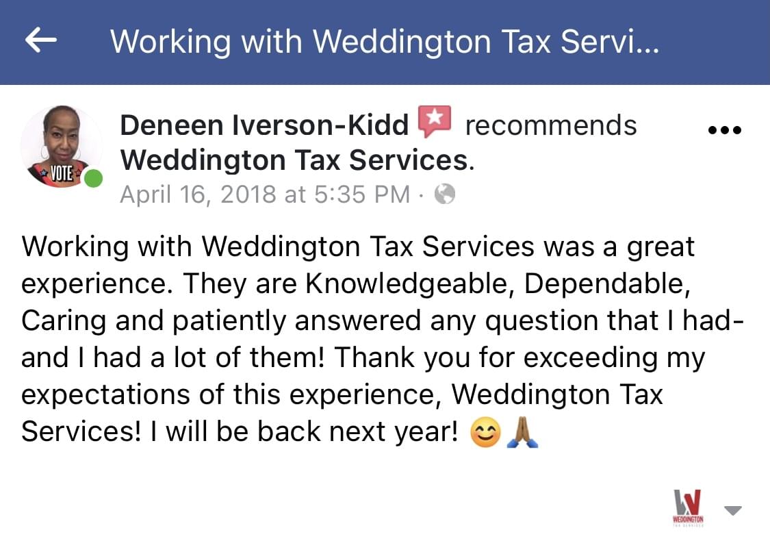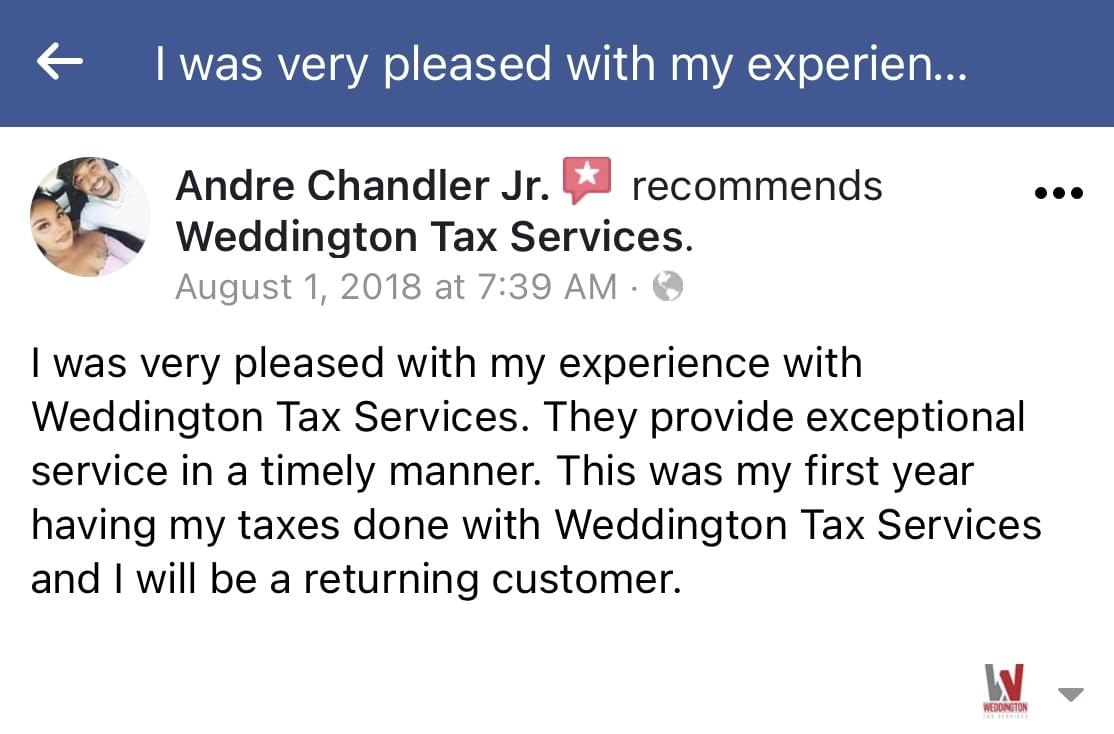 At Weddington Tax Services we consider it both a privilege and an honor to receive referrals from you. We value your referrals so much that we believe you should be compensated. For every referral that completes a tax return with us we will send you $20 with no cap. In addition, if you refer at least 3 people in a given tax season, you will receive a free tax return! We will send you your complete fee back.